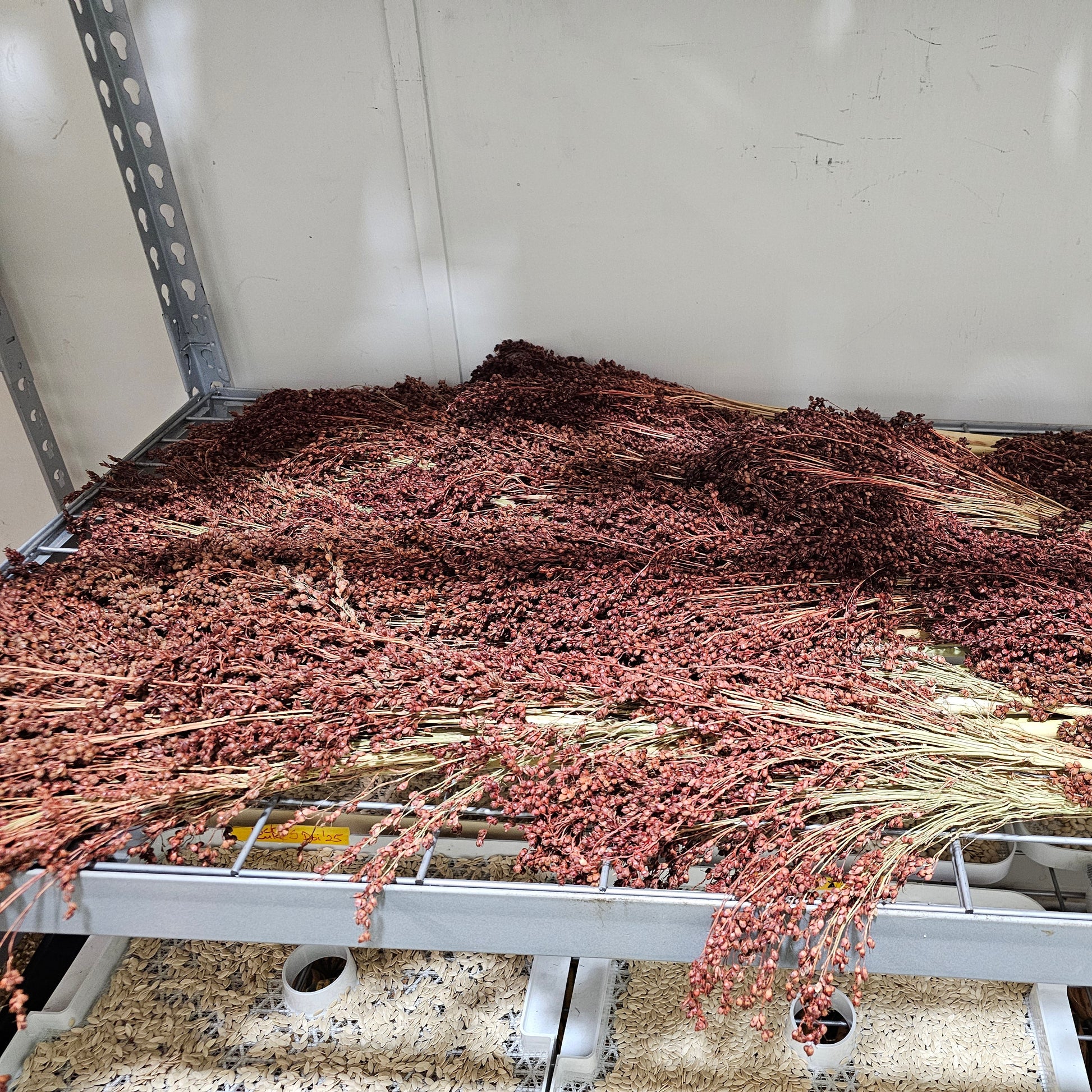 This comes from a mixture of sorghums used for making brooms. After stripping ripe seeds from panicles they can be used for bird seed, or left in the field for winter bird forage. Edible for humans as well, although not specifically a culinary variety. Highly ornamental variety that can be grown as a seasonal screen, used in cut flower arrangements, and for broom making.