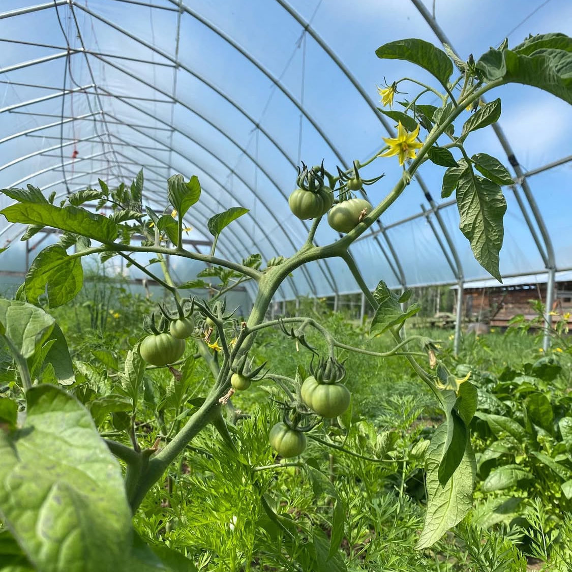 The number-one walk-by snacker on our farm! Bred by Canadian Karen Olivier (Northern Gardener) and Marsha Eisenberg, Karma Miracle has become a staple for its rich, balanced flavour. Heirloom beefsteak-like sweetness on these tall, potato-leaf plants ripening in about 72 days and thriving in northern gardens or heat.