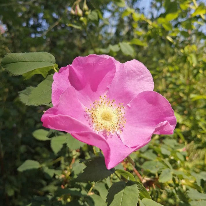 This hardy PNW native perennial shrub is easy to grow from seed and produces pretty sweet-scented pink blossoms within 2-3 years. Bright red hips are tasty and full of Vitamin C and provide wildlife food well into the winter months. Petals are nice in herbal tea or flavoured vinegar. Spreads with tough suckering roots so plant where it is able to naturalize, or constrain in a buried planter pot!
