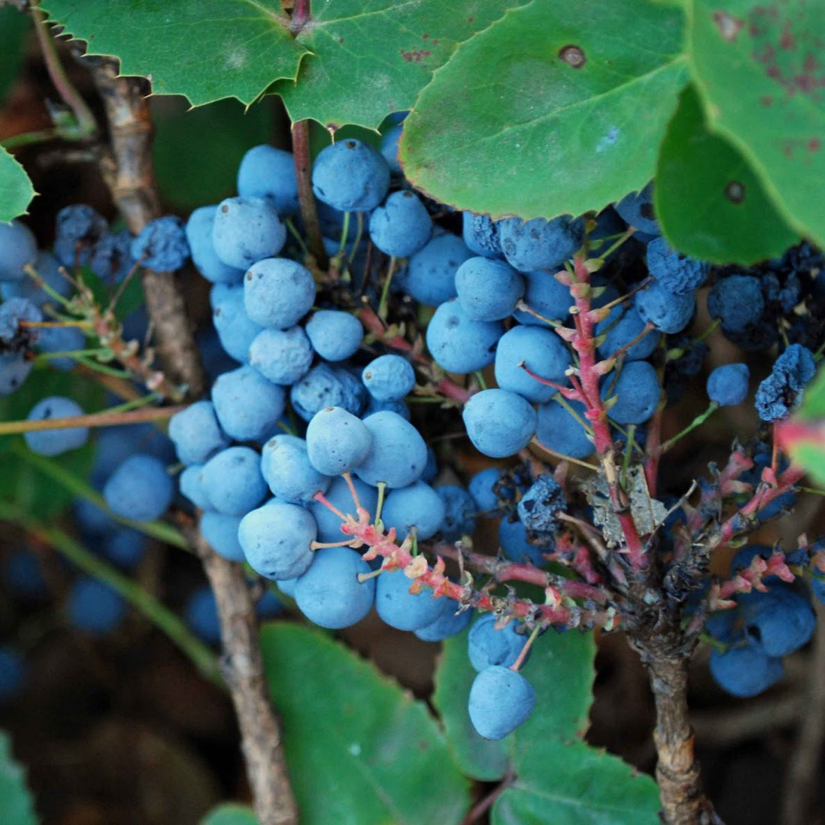 This yellow-flowered native shrub with holly-like foliage blooms as early as February on the BC coast, providing important feed to early pollinators. A hardy plant thriving in both shade and sun, it is drought tolerant and can grow to 2 metres tall. The purple-blue berries are high in antioxidants and pectin, making excellent jam, jellies and wine. A superb dye plant.
