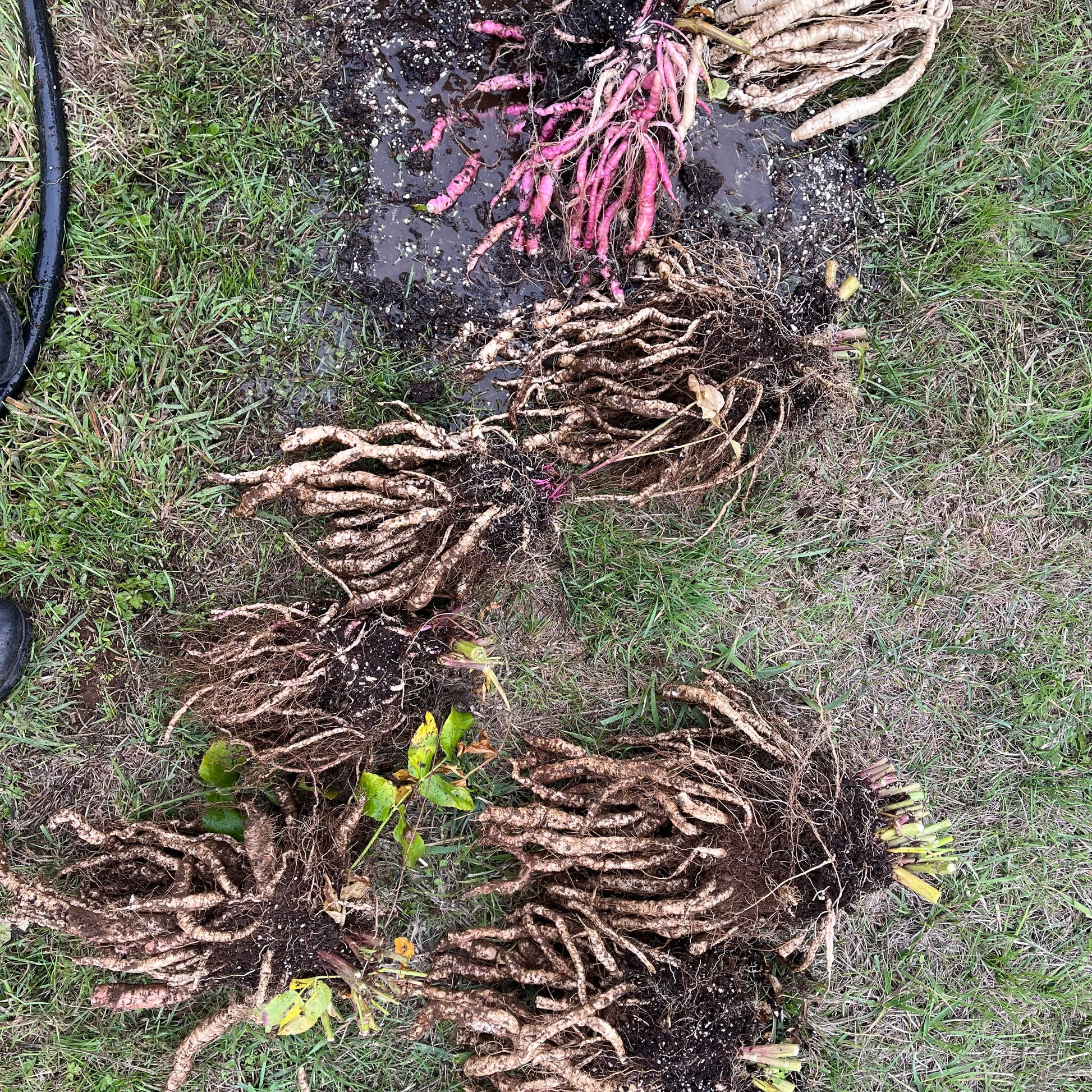 Interestingly, my plants took over a year to produce the pink pigment. I sowed them in spring 2024, and then I dug them up in April 2025, no roots were pink. I divided them and transplanted them at my lease site, and lo and behold, when digging them up in fall 2025, several plants had turned pink!